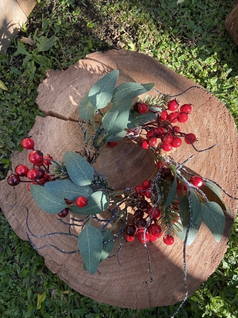 Valor referente a uma guirlanda de Berrie, demais itens da foto como a vela, madeiras, não acompanham o produto